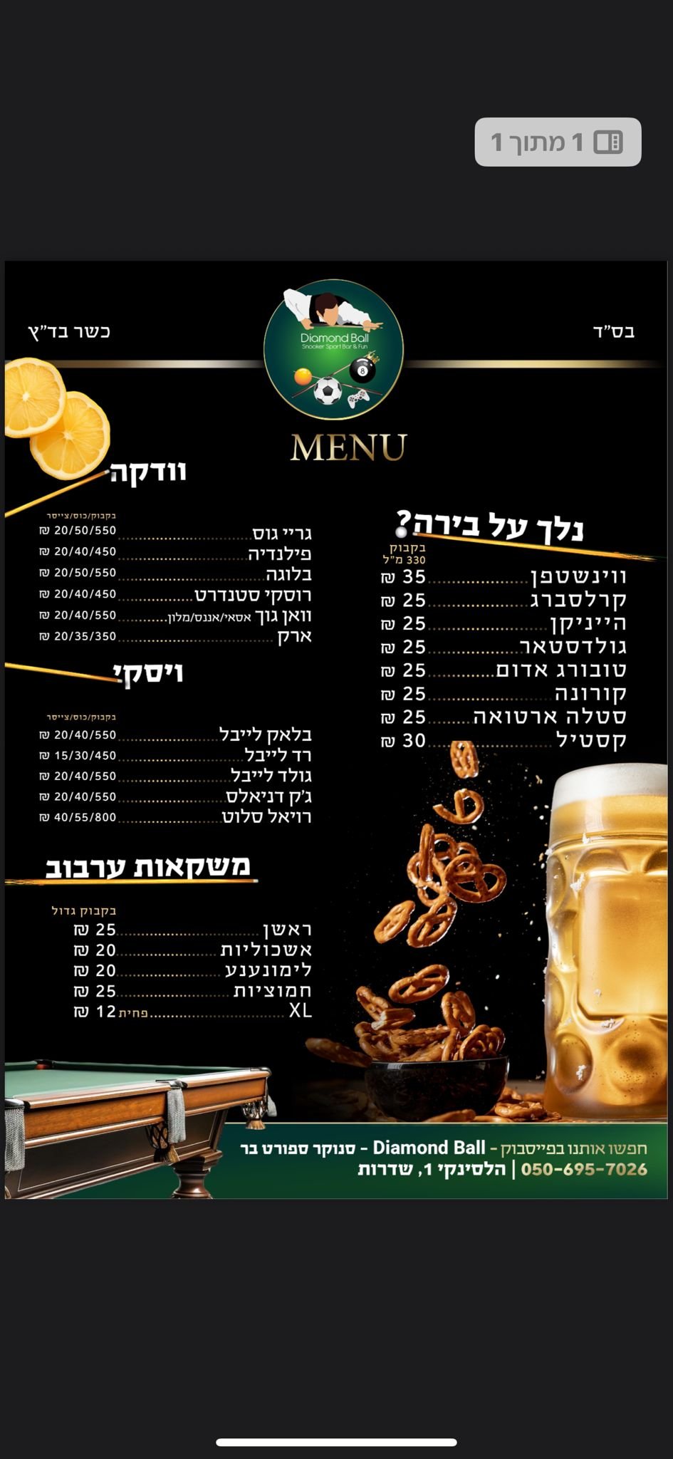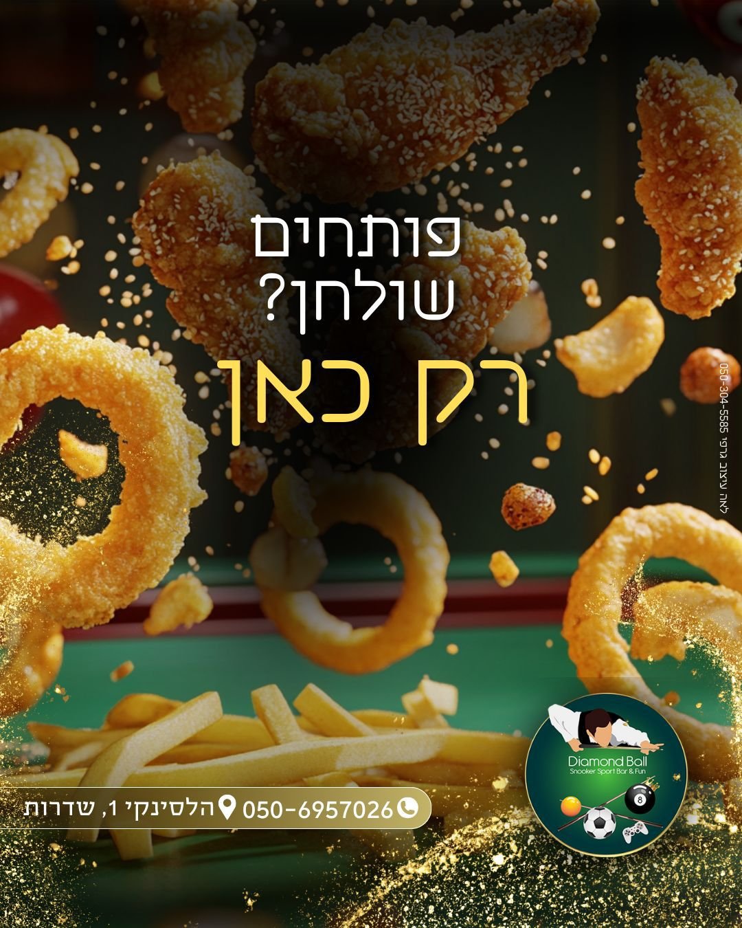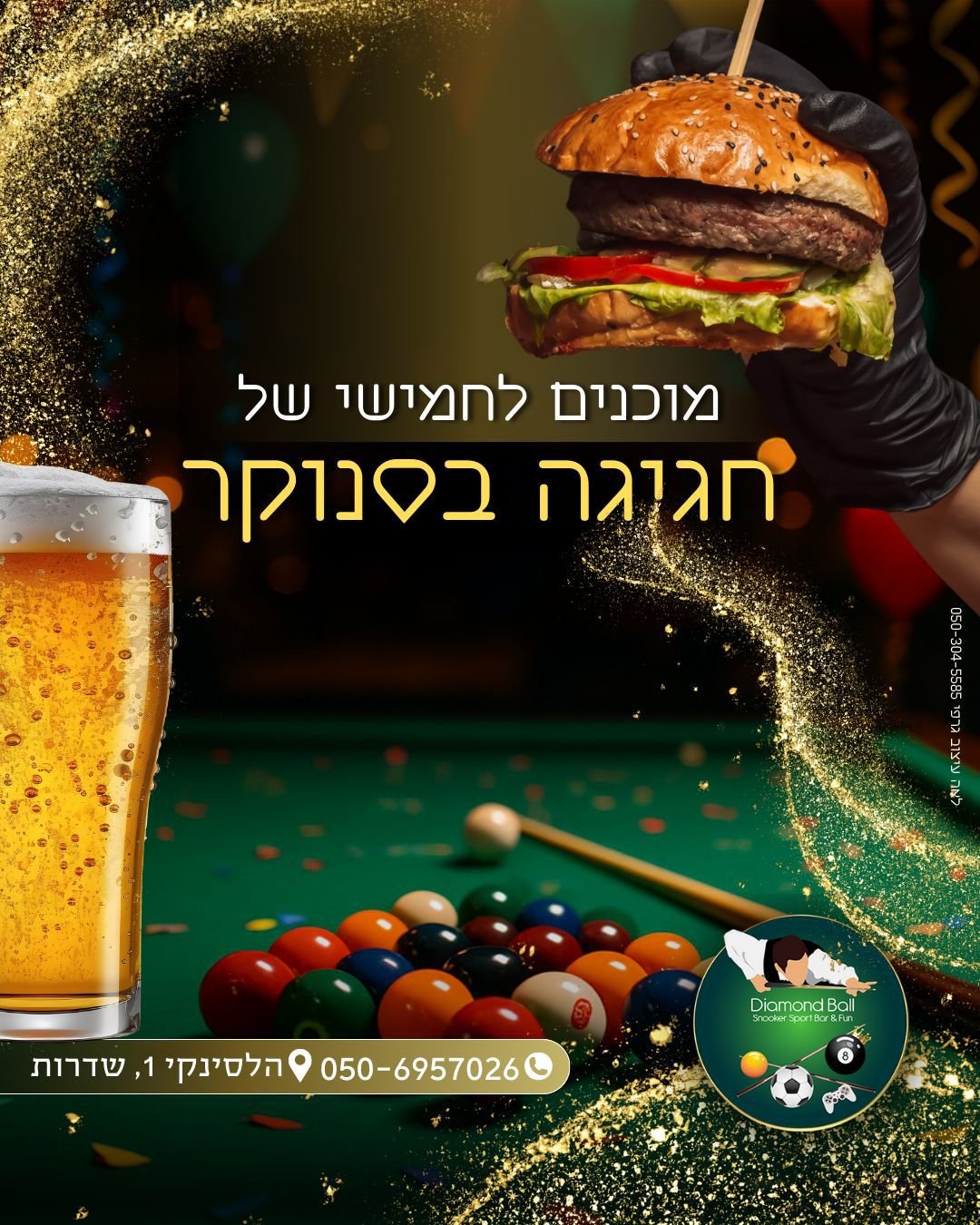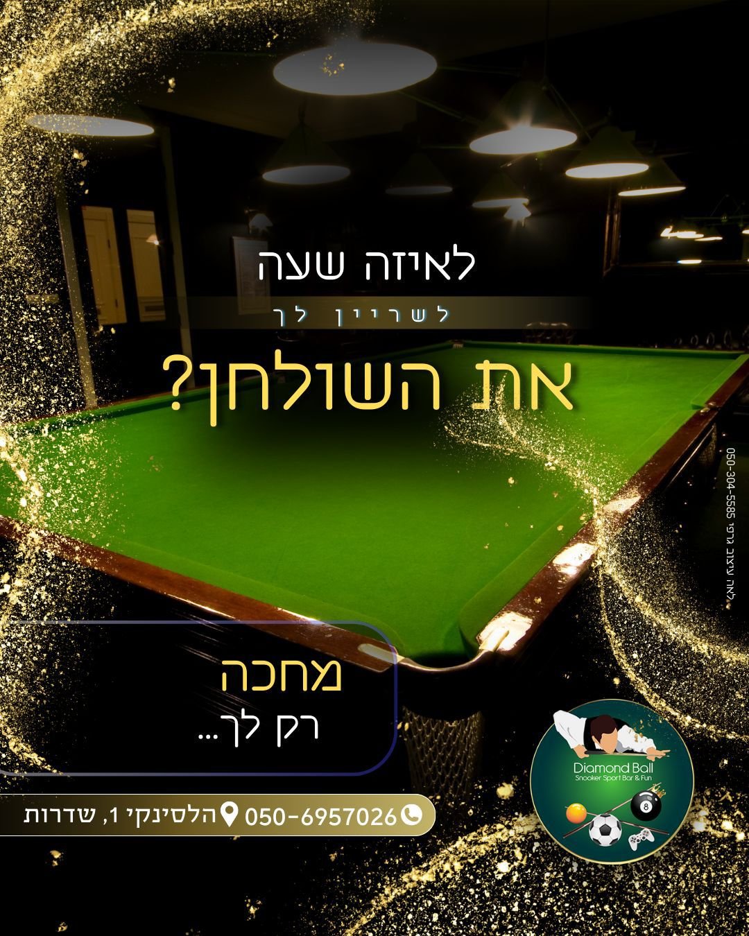 אם אתם מחפשים מקום להעביר בו ערב מושלם, לחגוג יום הולדת, ליהנות ממשחק סנוקר איכותי, לראות משחק בשידור חי או פשוט לשבת עם חברים – Diamond Ball הוא המקום בשבילכם. 🎱✨